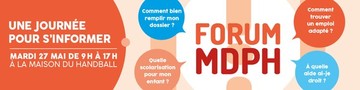 Mardi 27 mai, venez rencontrer l'équipe de la Maison Départementale des Personnes handicapées du Val-de-Marne lors du forum MDPH à la Maison du handball à Créteil : rendez-vous incontournable à destination des enfants et adultes en situation de handicap et de leurs aidants ainsi que des professionnels du champ du handicap.