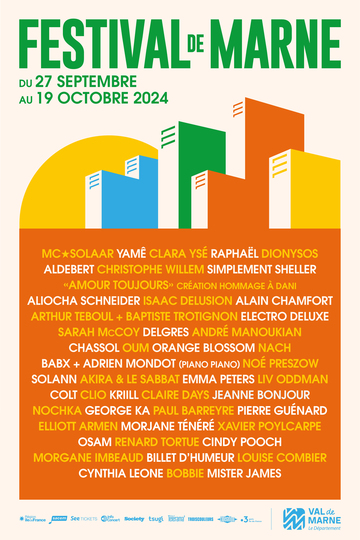 La 38e édition du Festival-de-Marne vous accueille du 27 septembre au 19 octobre 2024. Venez profiter d’une programmation de qualité avec MC Sollar, Yamê, Dionysos, Raphaël, Aldebert, « Amour Toujours », Aliocha Shneider, Emma Peters, Christophe Willem, Nach et des dizaines d’autres artistes à (re)découvrir !